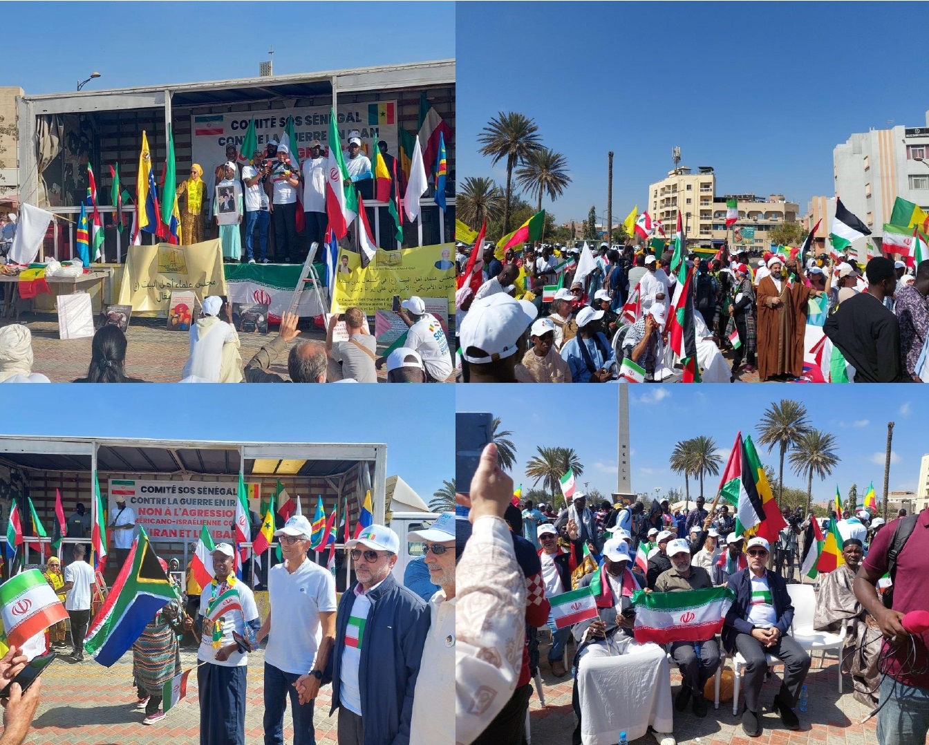 این تجمع به همت «کمیته هماهنگی مخالفت با جنگ و حمایت از ایران (SOS)» و «کمیته دفاع از حقوق فلسطین» و با حضور گسترده اقشار مختلف مردم برگزار شد. در این برنامه، علاوه بر حضور پرشور مردم، جمعی از علما و نمایندگان طریقتهای مذهبی نیز مشارکت فعال داشتند که نشاندهنده جایگاه و اهمیت این موضوع در میان افکار عمومی و نخبگان مذهبی کشور سنگال میباشد.